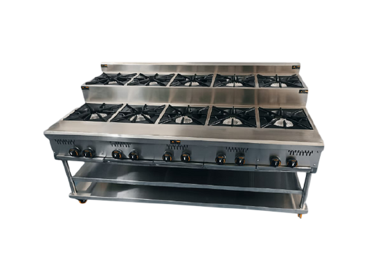 La Estufa 10 Puestos Lineales está diseñada para cocinas industriales que requieren alta capacidad y máximo rendimiento. Fabricada en acero inoxidable, ofrece gran resistencia, fácil limpieza y durabilidad para uso intensivo en restaurantes, hoteles y comedores industriales.